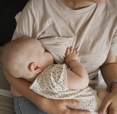 💦 Se allattate in posizione a culla, semireclinata, ecc, potete posizionare fra il vostro corpo e quello del piccolino una mussolina di cotone o di lino che vi permetta di non appiccicarvi troppo.